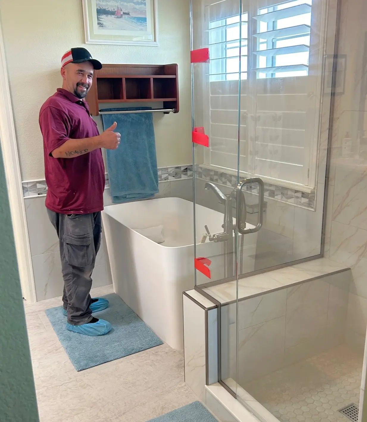 Experience the latest bath remodeling mastery: a client’s perfect vision made reality with skill and precision. Your ideal bathroom awaits – get an estimate today!